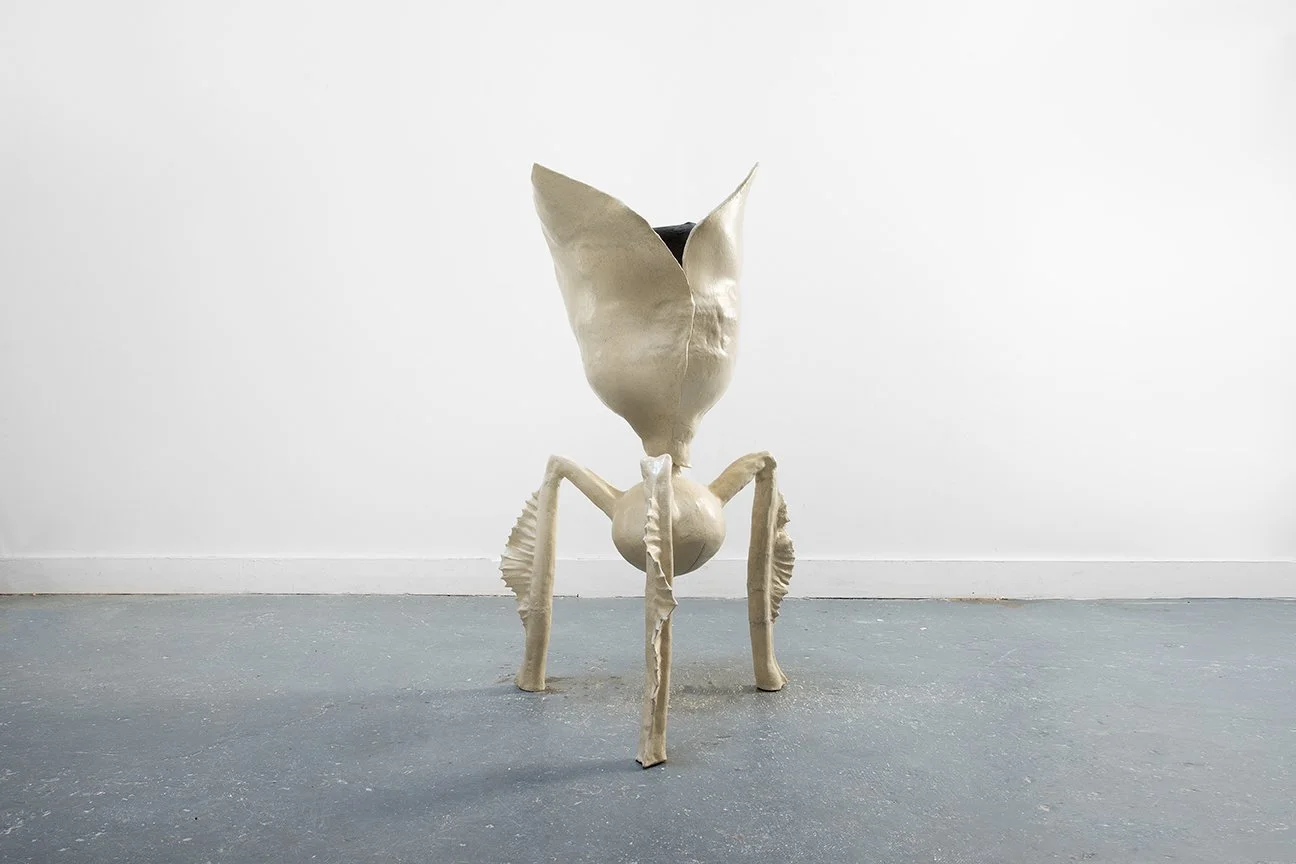 She explores the slipperiness of categories, producing bodily ceramic sculptures that simultaneously resemble fruits, geodes, and undersea creatures. She complicates their seemingly organic form and fragile materiality with metal interventions that reference the built environment. The sculptures suggest a fuzziness between human and human-made, plant and mineral, troubling categorization and connoting infinite fluid possibilities.